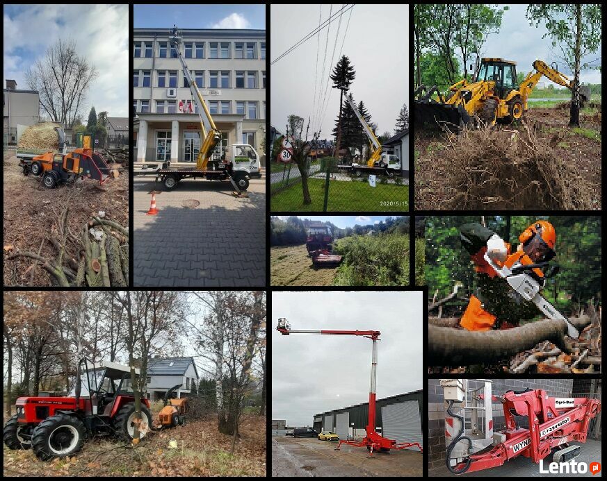 Wycinka drzew za pomocą podnośnika zwyżki++Koszenie mulczowanie karczowanie kosiarką bijakową Działek zachwaszczonych od dawna nie koszonych oraz usuwanie samosiejek różnego rodzajów drzew i krzewów